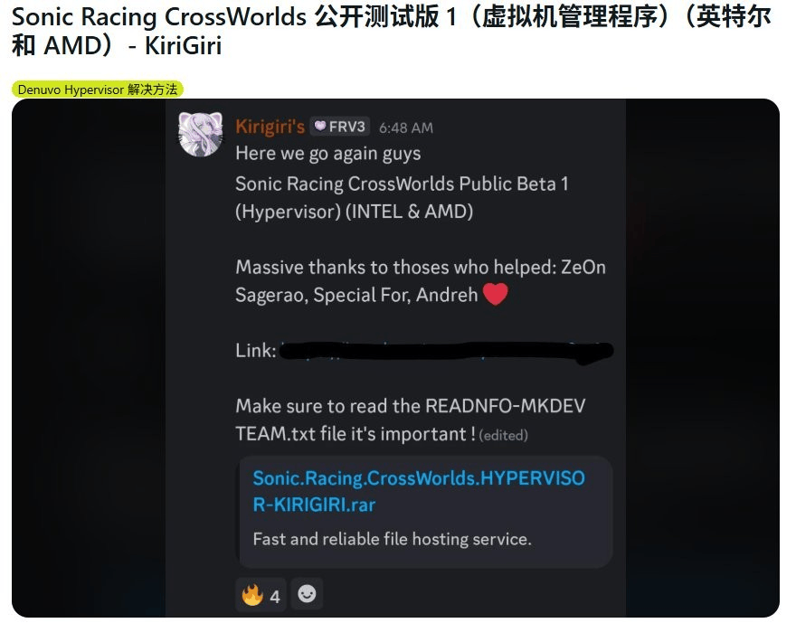 据介绍,此次测试版仍然是通过虚拟机环境运行的方式实现,兼容 AMD 与 Intel 处理器架构。这也被视为近年来首次有采用最新版本 D 加密的游戏被成功绕过保护。《索尼克赛车:交叉世界》于 2025 年 9 月底发售,距离推出时间并不算久,因此该进展在技术层面具有一定象征意义。