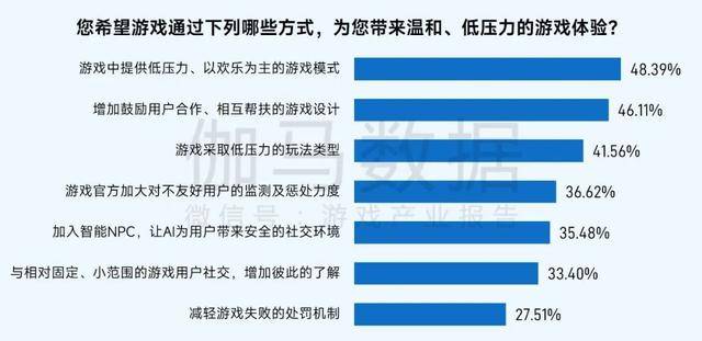 用户所关注的“温和体验”正成为游戏产业履行社会责任与实现长期价值的重要切入点。该趋势由用户需求驱动,调查显示超八成用户偏好低压力游戏环境,体现了用户对放松与情感陪伴的核心诉求。将这一理念融入产品设计,能够在社会价值与商业回报间建立良性循环:友好的体验不仅利于用户留存与品牌建设,也为游戏发挥情绪支持等社会功能创造了数字化空间。