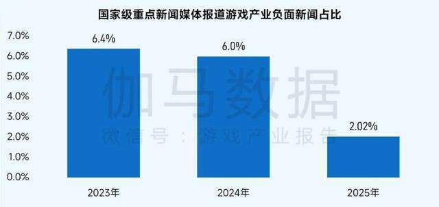国家级重点新闻媒体对游戏产业的负面报道比例持续下降,2025年降至约2.0%,在未成年人保护和企业纠纷等方面显著减少。